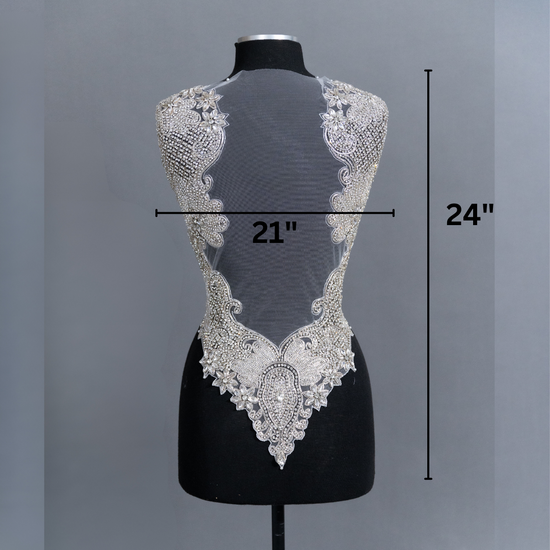 This beautiful applique is handmade with top-quality Rhinestone beads. The applique is attached to a mesh backing to make it super easy for DIY projects. This applique can be used in many different styles and positions. What we have shown in the photo is our favorite look.